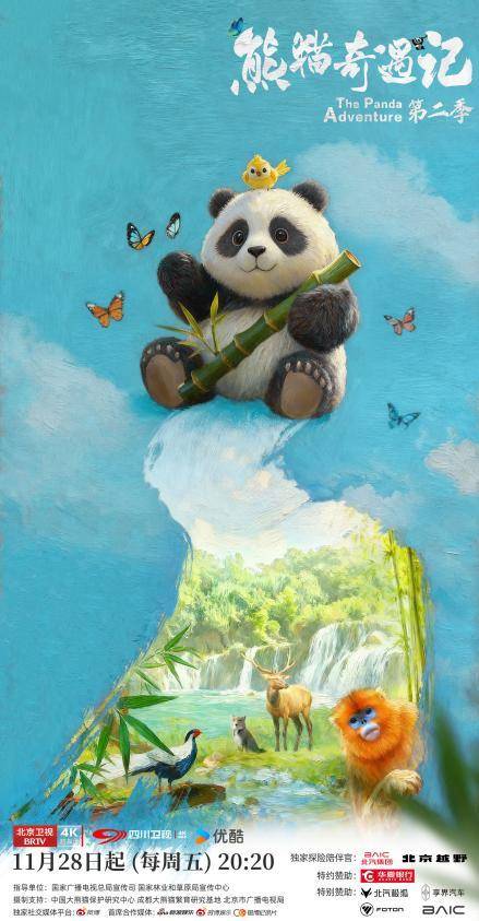 从一只熊猫的萌动日常,到一座城市的生态选择,再到一个国家的绿色担当——由国家广播电视总局宣传司、国家林业和草原局宣传中心指导,中国大熊猫保护研究中心、成都大熊猫繁育研究基地、北京市广播电视局支持的中国大熊猫文化纪实观察节目《熊猫奇遇记》第二季,将于11月28日20:20于北京卫视、北京时间客户端、北京卫视视频号播出;21:15于四川卫视、四川观察客户端、四川卫视视频号播出;21:00于优酷播出;并同步覆盖YouTube、Facebook等新媒体矩阵。节目将携手官方指定座驾北京越野BJ30旅行家与生态合作伙伴华夏银行,共同开启一场跨越中国八大生态腹地的深度探索。